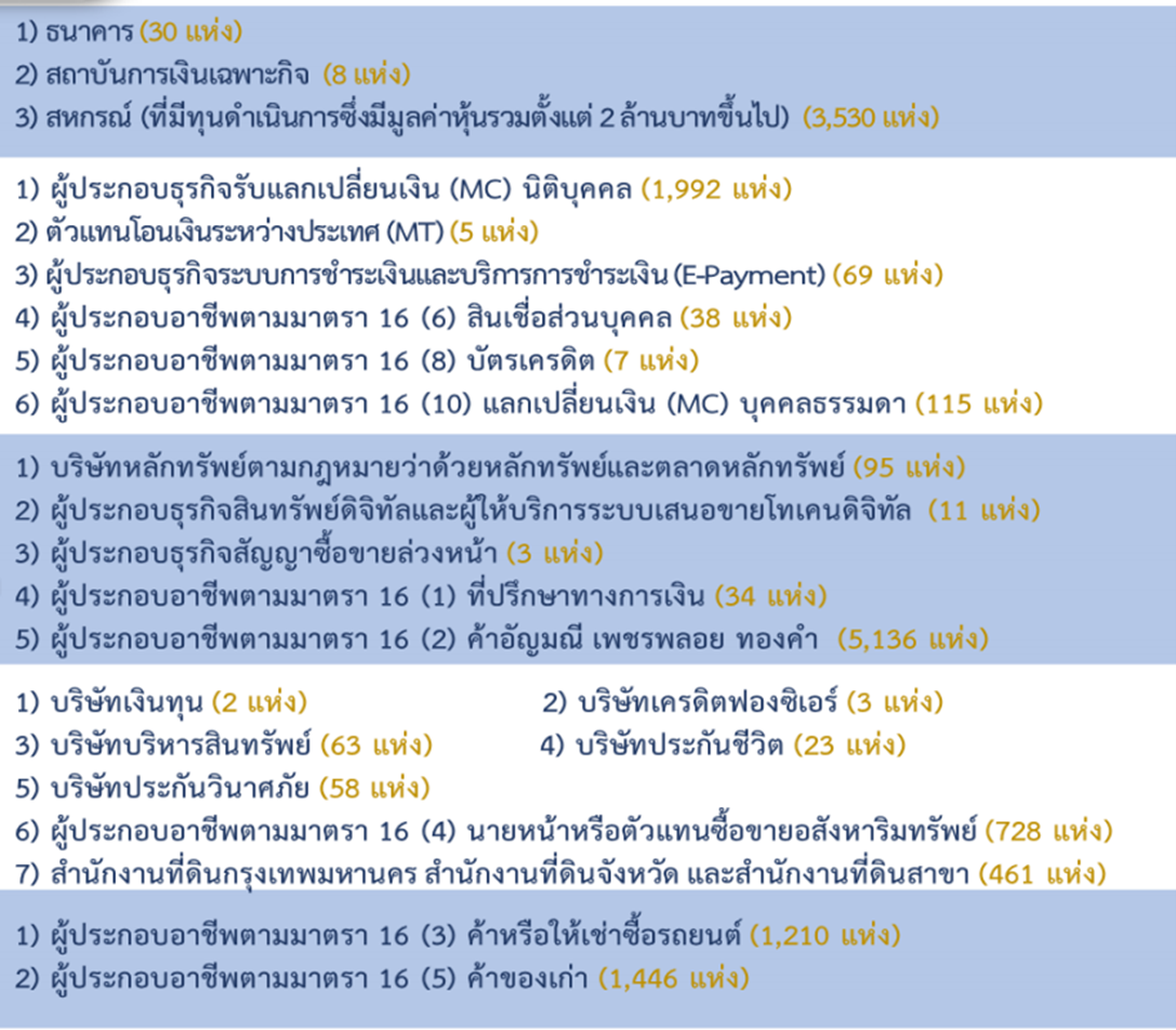 *AML/CTPF = Anti-Money Laundering/Counter-Terrorism and Proliferation of Weapon of Mass Destruction Financing การป้องกันและปราบปรามการฟอกเงินและการสนับสนุนทางการเงินแก่การก่อการร้ายและการแพร่ขยายอาวุธที่มีอานุภาพทำลายล้างสูง
