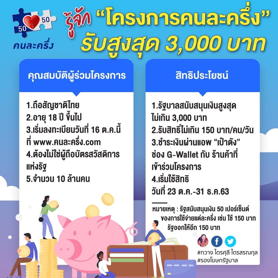 สรุปชัดชัด! “โครงการคนละครึ่ง” รับวงเงินสนับสนุนสูงสุด 3,000 บาท จำนวน 10 ล้านคน เริ่มลงทะเบียน 16 ต.ค.นี้