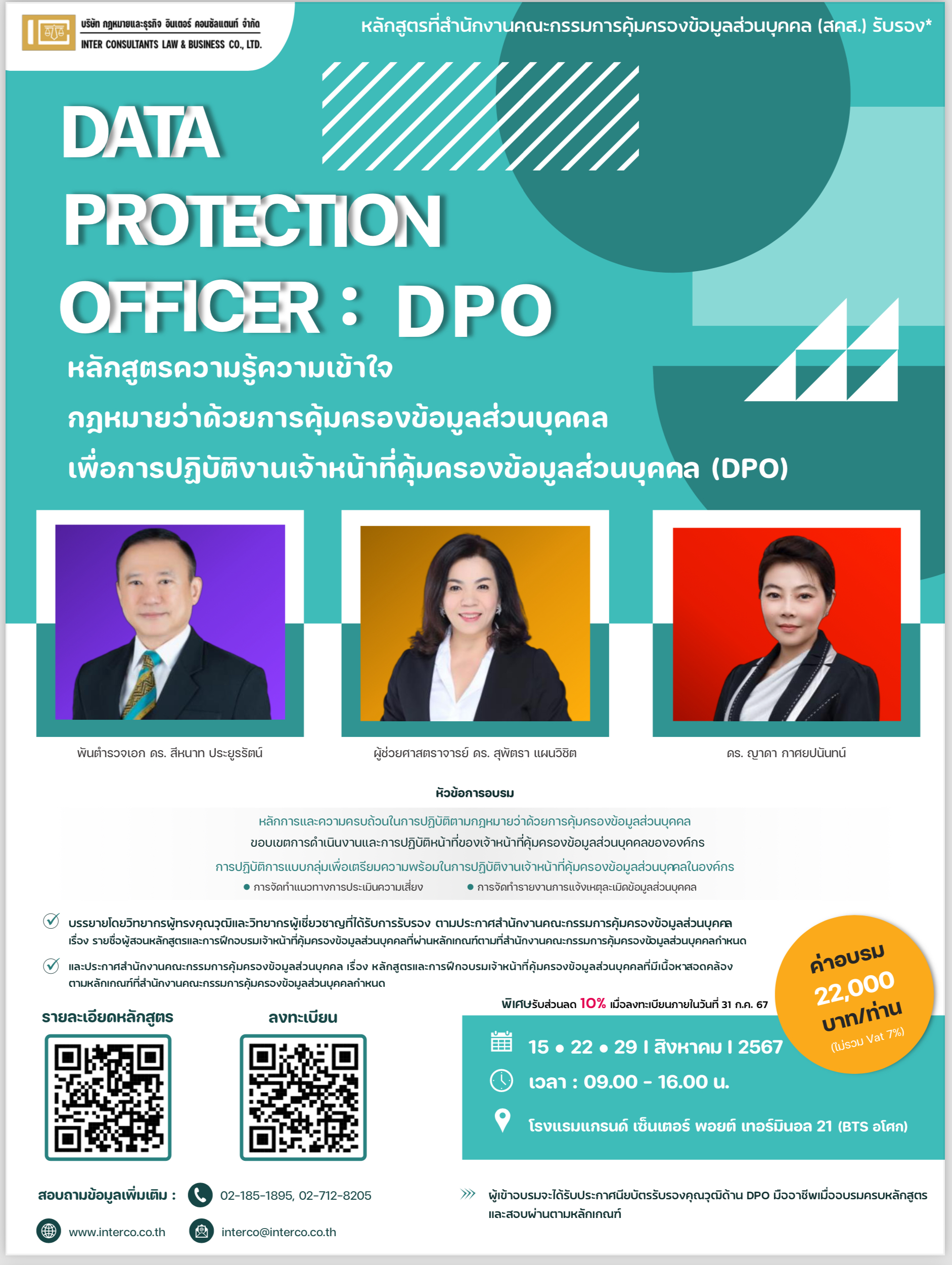 หลักสูตร ความรู้ความเข้าใจเกี่ยวกับ กฎหมายว่าด้วยการคุ้มครองข้อมูลส่วนบุคคลเพื่อการปฏิบัติงานเจ้าหน้าที่คุ้มครองข้อมูลส่วนบุคคล